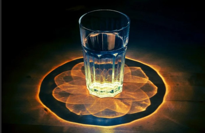 - Положите на стол лист с желанием, на него — стакан с водой.