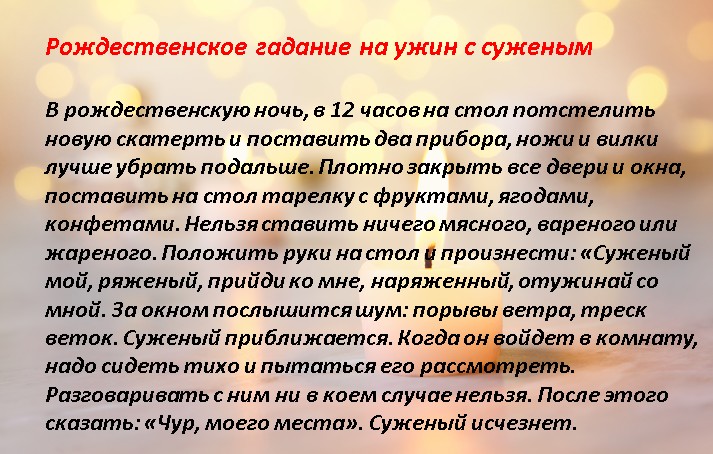Среди многочисленных вариантов гадания, одно из популярных — чего ожидать в своей дальнейшей судьбе. Не упустите возможность погадать в рождественскую ночь.