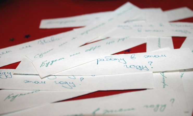 • Нарезанные полоски с желаниями скатайте в трубочки, положите в кастрюлю с водой. Всплывший листок будет содержать желание, которому суждено сбыться..