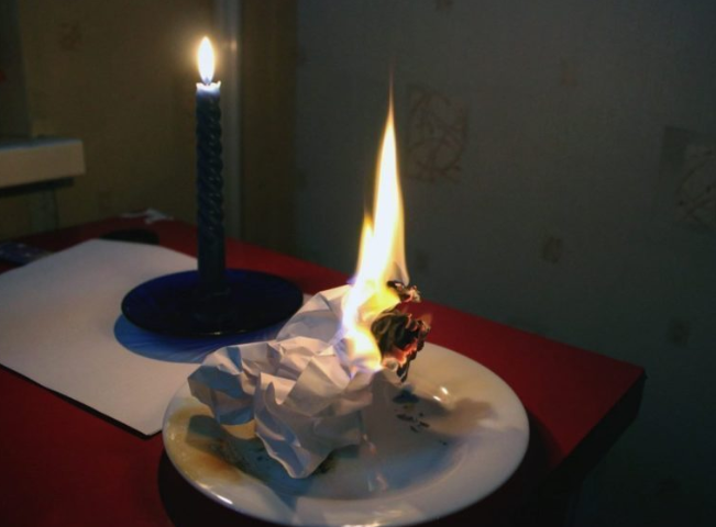Узнать будущее можно, глядя на тени от сожженной бумаги. Разделите тетрадный лист на две части и напишите свои желания. Затем сомните лист и подожгите его на тарелке. Поставьте свечку между тарелкой и стеной. По мере горения бумаги на стене будут вырисовываться тени. Вот их-то и следует внимательно рассматривать. Включите воображение и возможно вы там увидите свою будущую работу, свадьбу или путешествие. Например, если вы заметили очертания самолета, значит скоро вам придется куда-то лететь.