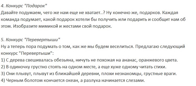 Хорошо зарекомендовали себя музыкальные викторины, например «Угадай мелодию». Такая викторина требует дополнительной подготовки, для нее необходимо составить аудио нарезку хитов. Хиты желательно миксовать, чередуя классику с репом, детскими песенками, отрывками из кинофильмов и т.д.