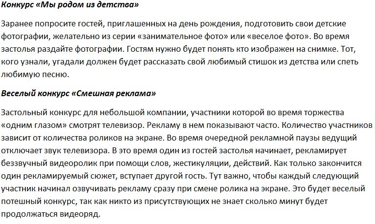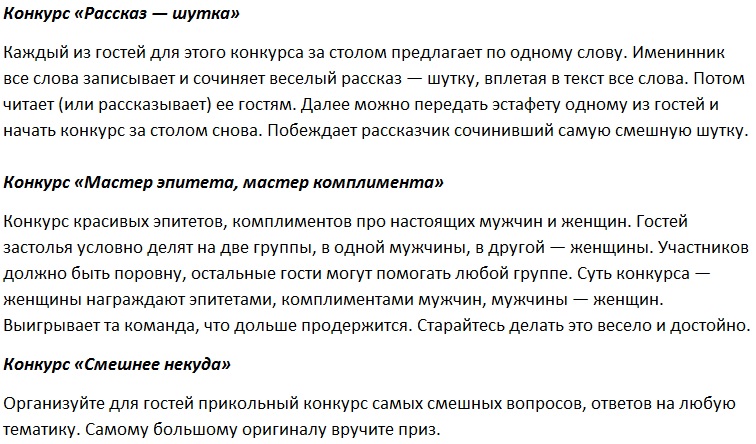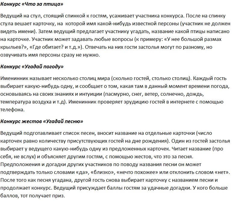 Лучшая викторина опрос гостей, что же они знают об имениннике. Вопросы могут быть самыми разнообразными, например, размер обуви, любимый фильм и т.д. Чем больше каверзных вопросов, тем веселее гости.