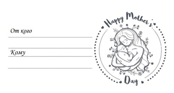 Чтобы оформить самый главный подарок праздника — открытку для любимой мамочки — подойдут готовые шаблоны. После распечатки их нужно раскрасить и задекорировать. Можно использовать глиттерные маркеры, блестки, ленточки.