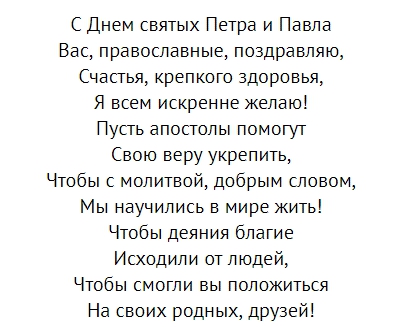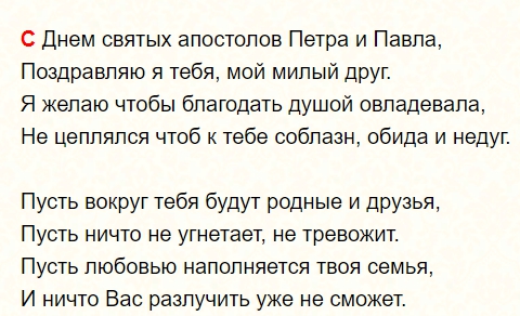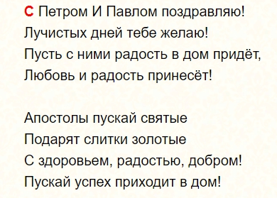 - Поздравления с днем святых Апостолов Петра и Павла: