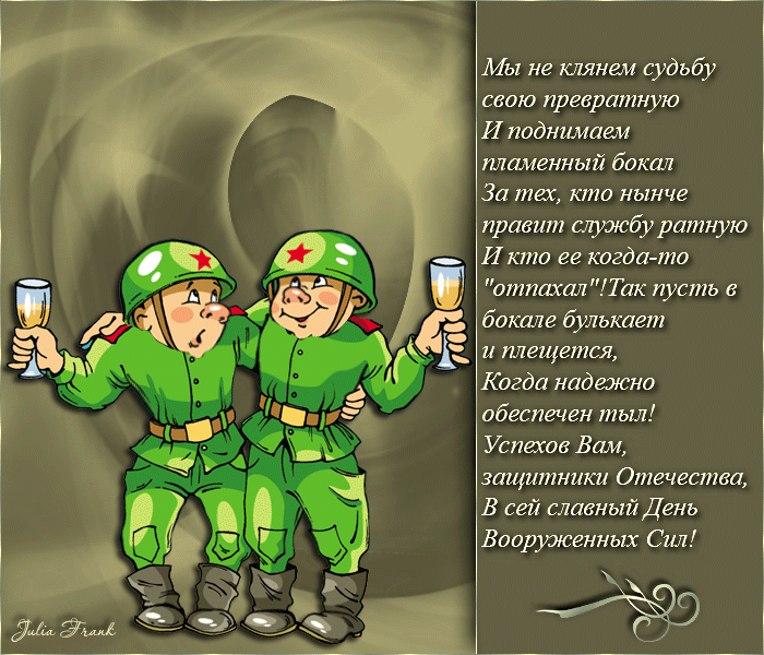 - Самых крутых военных поздравляем с этим замечательным праздничным днем! Желаем быть всегда на высоте, оставаться такими же умопомрачительно красивыми, статными, желанными и превосходными! Вы наши лучшие защитники!