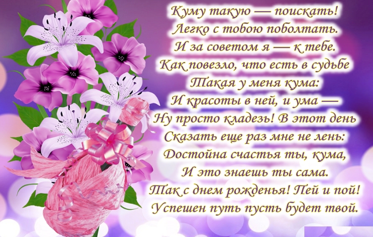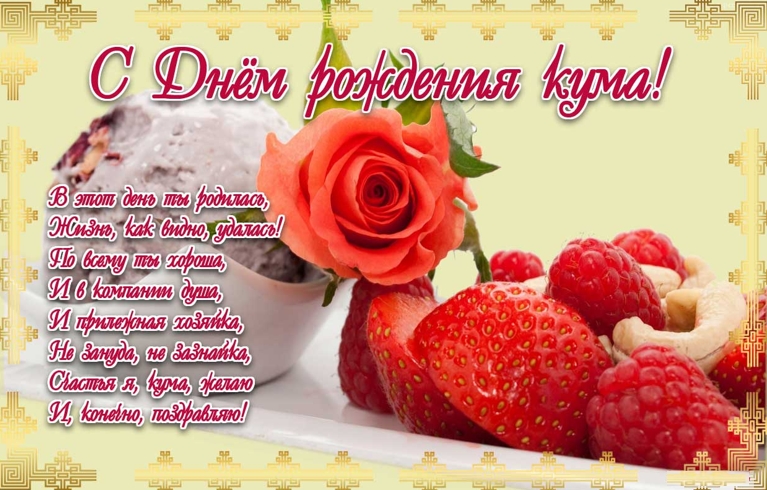 Нельзя обойти вниманием и куму, кроме подарка на ее День рождения, рекомендуем поздравить ее с юмором, отметить ее достоинства и пожелать счастья и радости.
