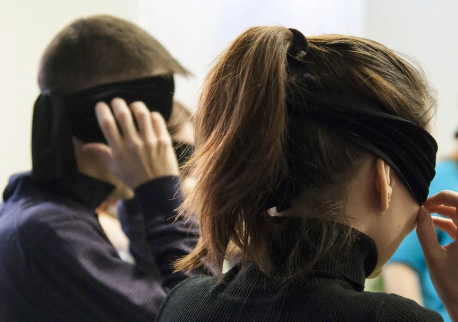 Ведущая: А сейчас мы представим, что в шахте на минуту потухло освещение и выполним следующий конкурс. На сцену приглашаются два участника, выдаются маркеры и ватманы. Конкурсантам завязывают глаза, чтобы ничего не было видно. Бумага кладется на стол и по команде нужно нарисовать своего соперника. Желательно, чтобы это были разнополые участники, так легче будет изображать коллегу.