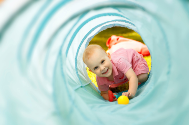 • Во время подвижных игр предлагать малышу преодолевать препятствия, например, проползти в тоннеле, используя для этого различные приспособления — ножки стула или коробку.