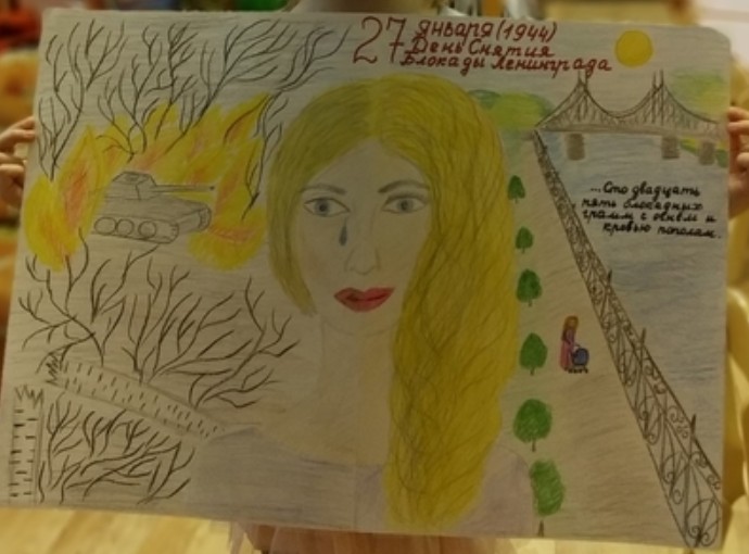 Ежегодно, 27 января, Санкт-Петербург отмечает знаменательную дату — День снятия блокады Ленинграда. Детям в образовательных учреждениях дают задание нарисовать рисунок к этой дате.