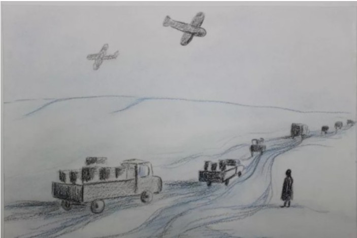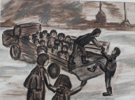 эвакуация детей из блокадного Ленинграда: рисунок карандашом война глазами детей