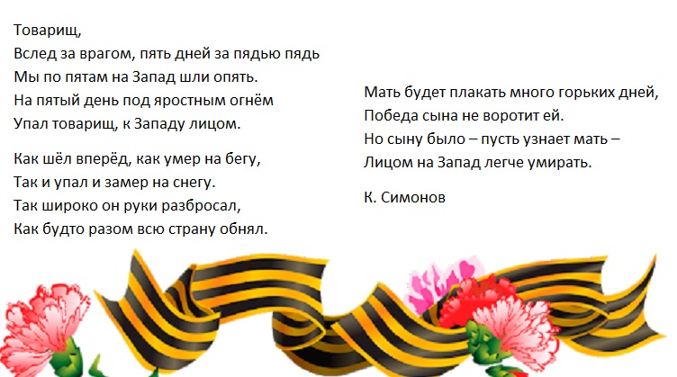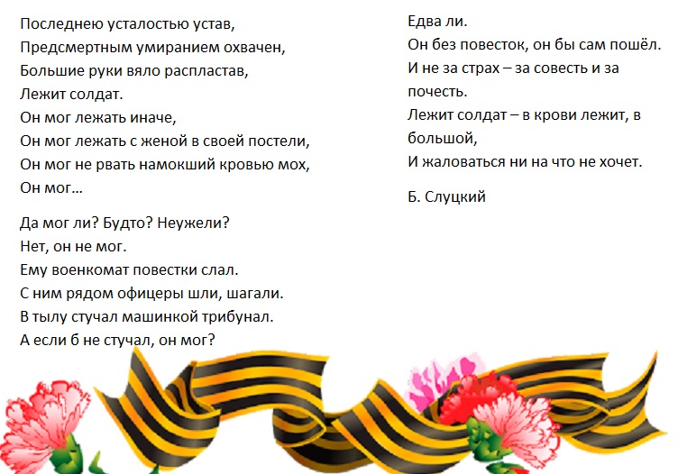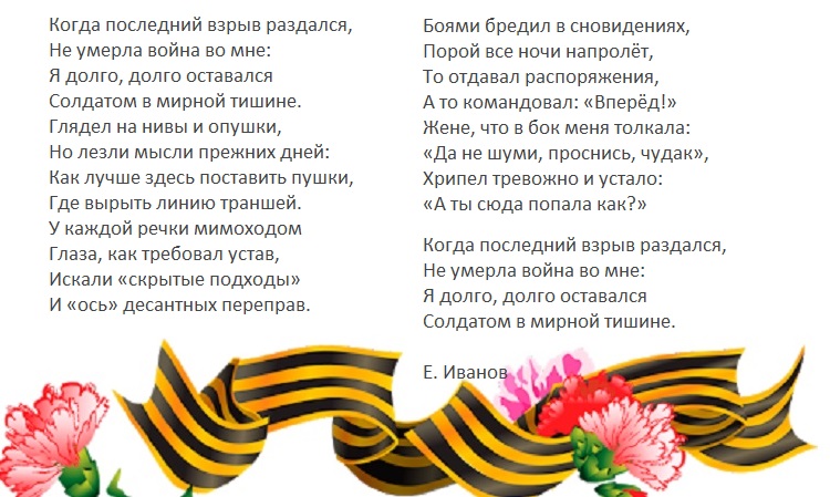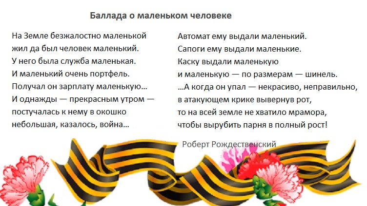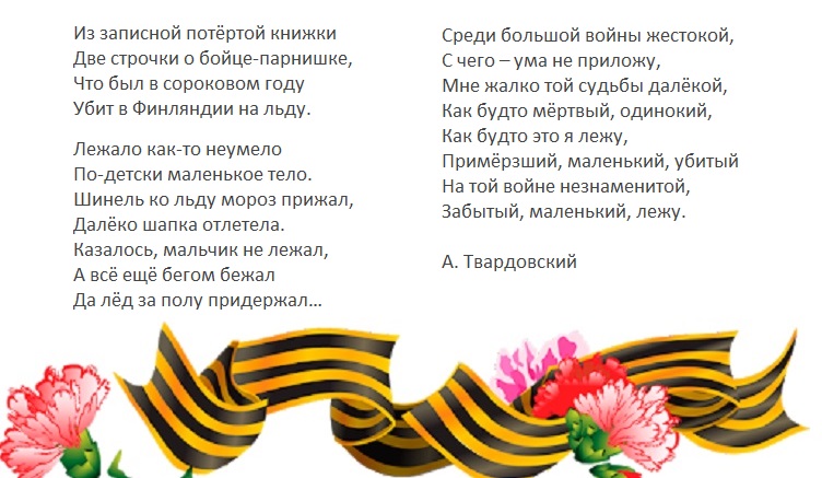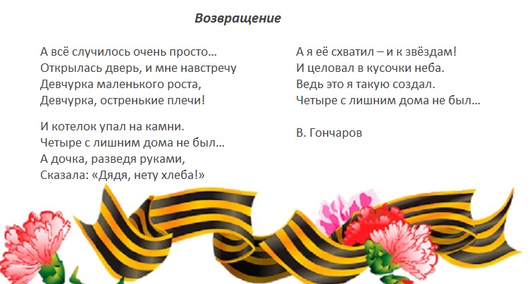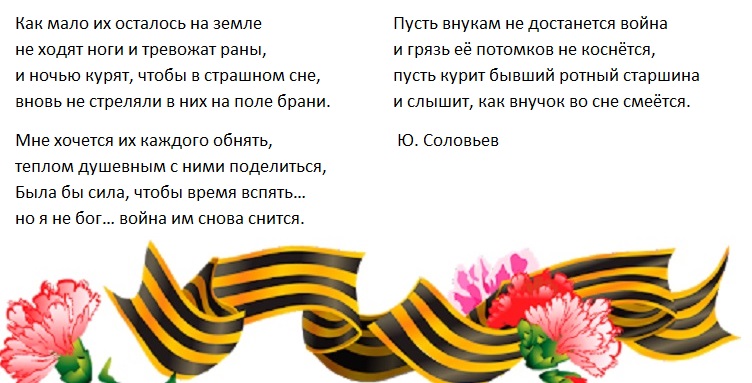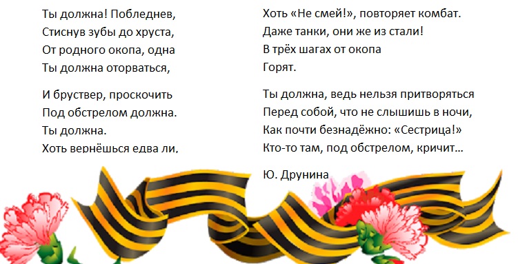 Детям, крайне необходимо учить стихи, которые бередят душу, тревожат детский ум. Только после осознания важности тех лет, проживая всю боль вместе с героем стиха, ребенок понимает какой подвиг совершили миллионы людей в далеких 1941-1945 годах. Благодаря таким стихам, дети понимают что пришлось пережить солдатам на поле боя, медсестрам вытягивая на себе раненых из-под обстрелов, матерям получившим похоронки.