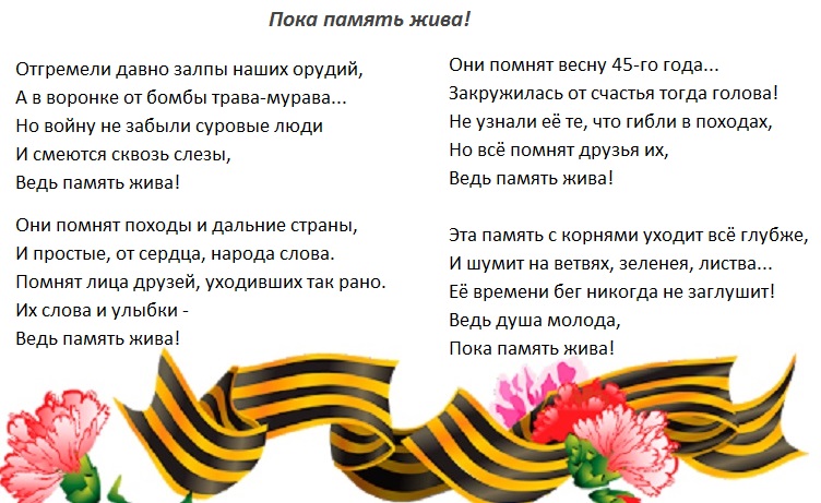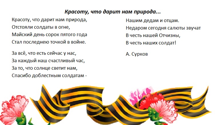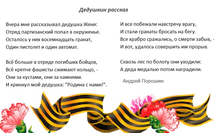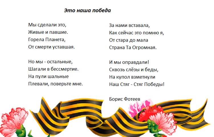 Память о героических поступках тех далеких военных лет воспевается в стихах. Для каждого первоклассника большая честь прочесть стих на таком празднике, тем более если на нем присутствуют ветераны.