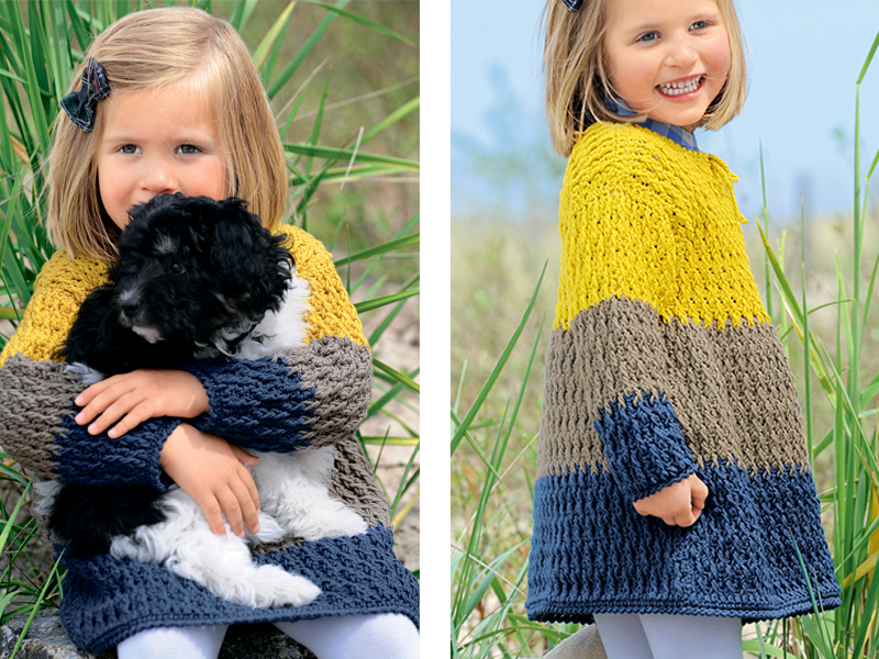 Теплое платье крючком со схемой и описанием, девочке до 10 лет