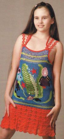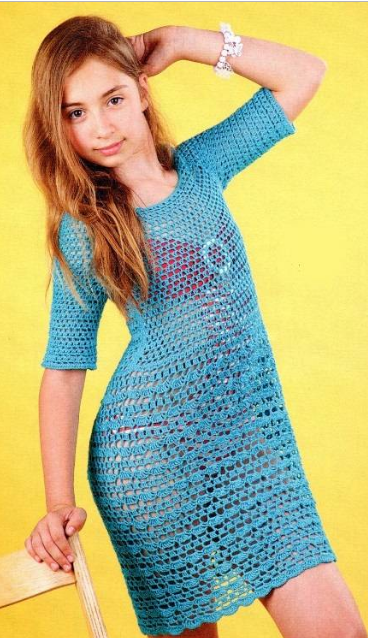 - Пляжное платье крючком со схемой и описанием, для девочки подростка