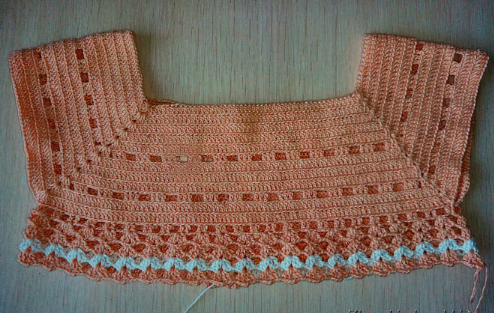 Перед и спинку формируем (отдельно) Спереди вяжем 6 ряд.