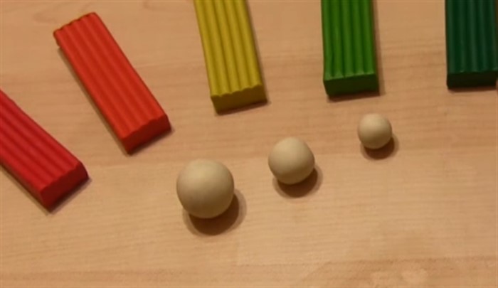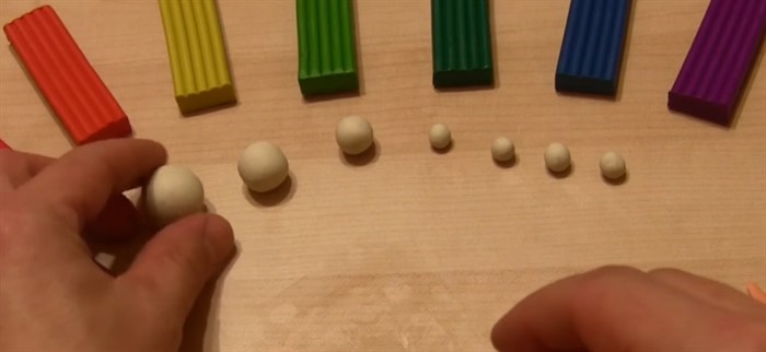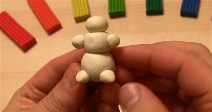 - Самому большому куску пластилина придайте форму круга, скатав его между ладошками.