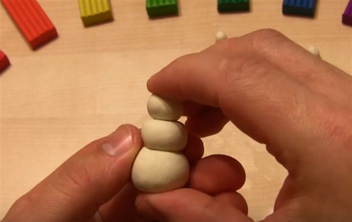 Детки любят лепить из пластилина, особенно в преддверии праздников в зимний период. В этом пошаговом руководстве, показано как просто слепить снеговичка всего из 3 оттенков пластилина.