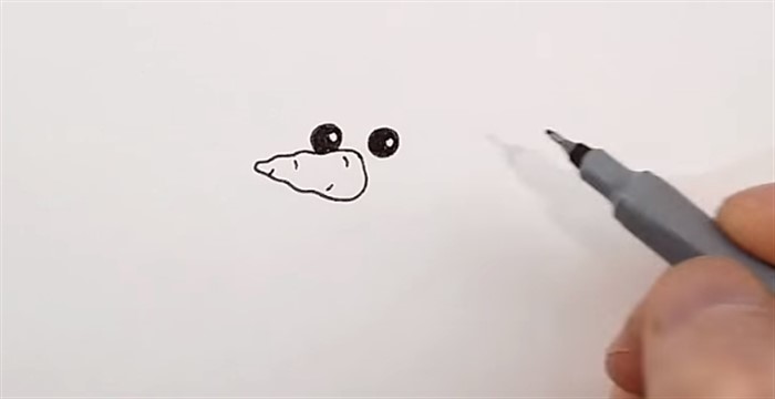Начинать рисунок мы будем не из туловища, а из морковки.