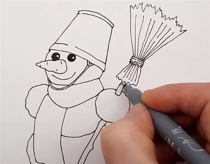- В левую руку поместите метлу и дорисуйте часть туловища.