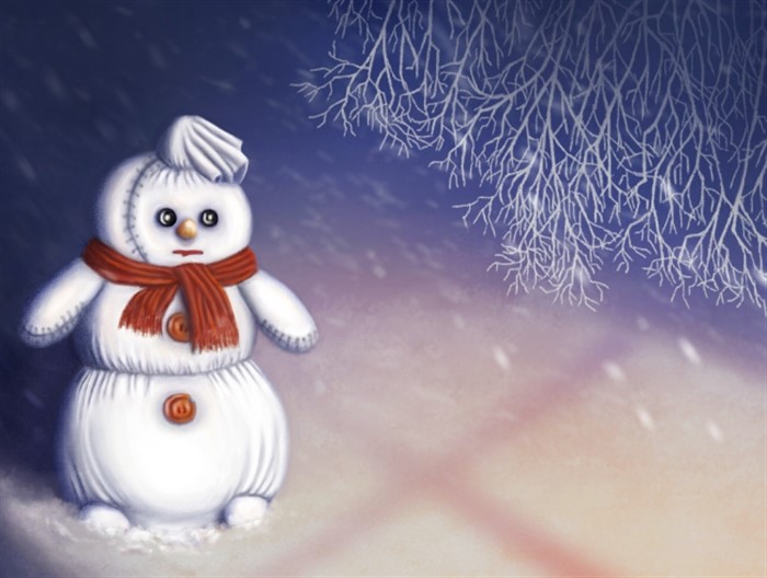 Но снеговичок только внешне был веселым. Если бы дети рассмотрели внимательнее, то заметили бы, что нарисованная землей улыбка совсем не радостная. Искоса снеговичок поглядывал из-под горки как мельтешится детвора и грустные холодные мысли проносились в его снежно-белой голове.