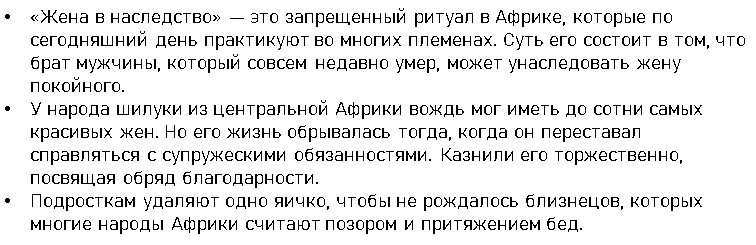 - Во многих племенах практикуют обряд обрезания у девочек, без которого она не может выйти замуж.