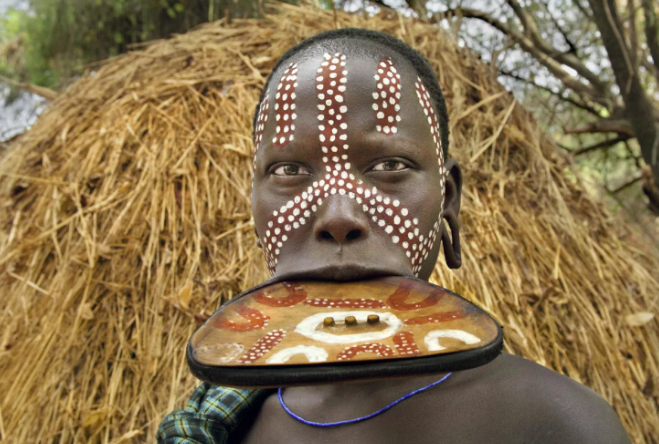 К самой жестокой и агрессивной группе из эфиопских племен относятся Мурси, мужчины которого постоянно находятся в алкогольном или наркотическом опьянении. Девочкам в раннем возрасте делают прорезь в нижней губе и вставляют деревянные круги, увеличивая их каждый год, чтобы растянуть губу. Это делают для того, чтобы в день свадьбы вставить девушке в оттянутую губу глиняную тарелку, только в этом случае за нее дадут большой выкуп.