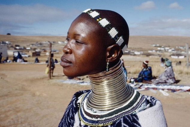 - Женщины Ндебеле носят всю свою жизнь кольца на шее, которые им начинают одевать в возрасте двух лет. Чем больше колец на шее женщины, тем большей любовью мужа она пользуется.