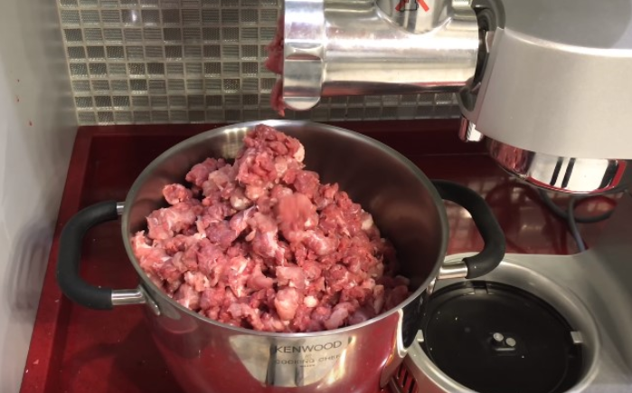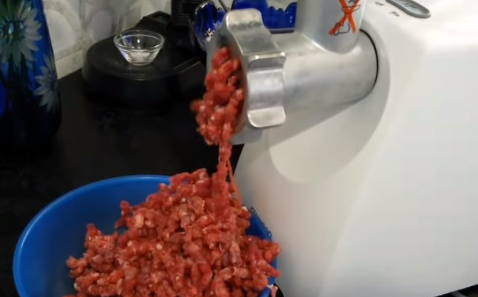 Детали от мясорубки следует охладить (положить в холодильник на один час), чтобы фарш не нагревался во время прокрутки.