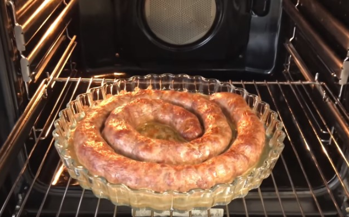 Мы предлагаем запечь в духовке. Колбаски протыкаем зубочисткой в нескольких местах и ставим в духовку (t 190 гр.) на один час.