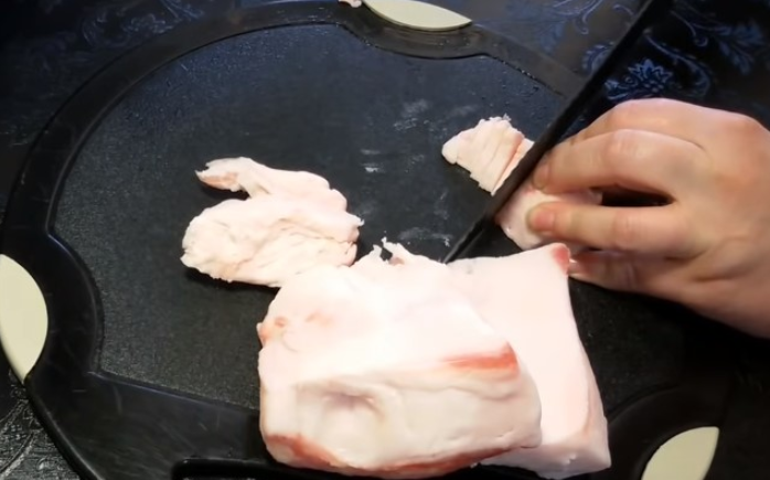Сало (не соленое) немного подморозить и порезать на небольшие кубики.