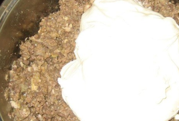 Далее очередь сметаны, соли и приправ.