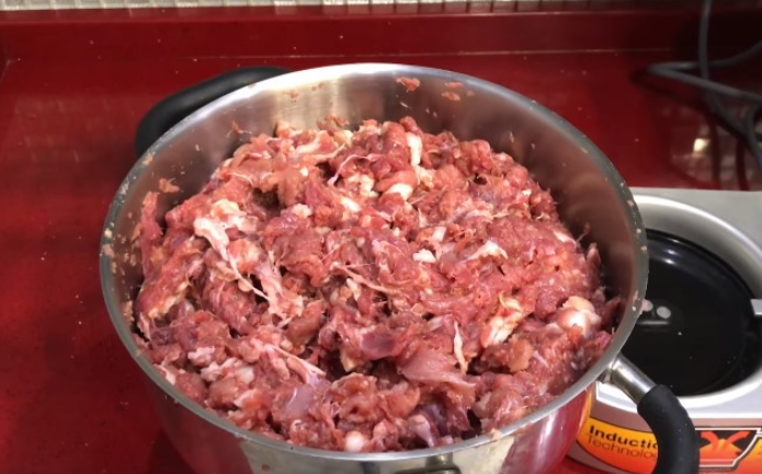 Для приготовления колбасы следует брать бедро и шею говядины. Свинина должна быть с хорошим слоем жирка. Перед приготовлением рекомендуется положить мясо в морозилку на 1 час.