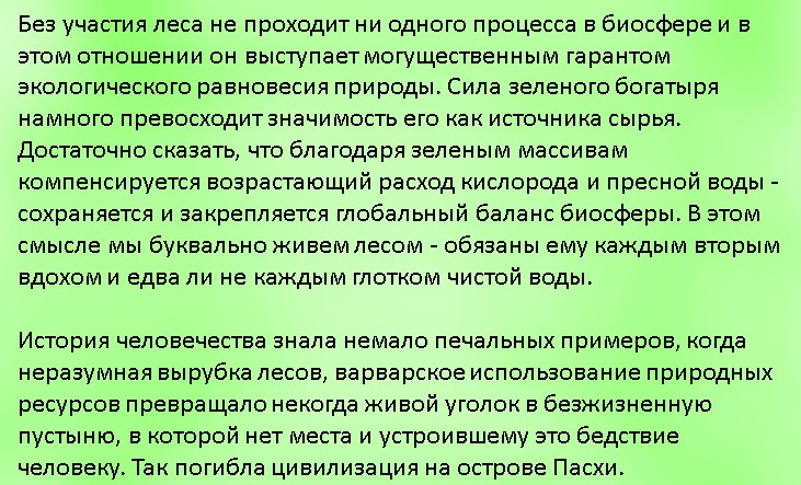 Лес является не только неоценимым богатством человечества, но и своеобразным органом, который позволяет дышать всему живому на планете.