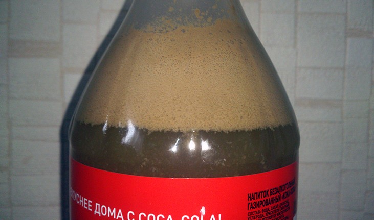 Приготовьте бутылку молока и бутылку колы. Одну четверть колы выливаем из бутылки. Заливаем молоко в оставшуюся часть газированного напитка. Через час начнут появляться хлопья, а жидкость станет светлее. Спустя еще какое-то время хлопья опустятся на дно, жидкость станет прозрачной.