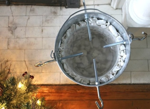 Обратите внимание, что приведенное количество материала рассчитано на елку не более 1,5 метра высотой. Если дерево у вас выше, саму емкость нужно брать больше объемом, так же, большего размера крючки и увеличить количество гравия.