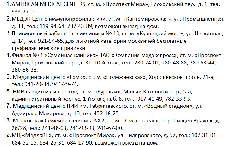 Прививку могут сделать в следующих медицинских учреждениях столицы: