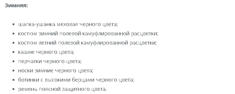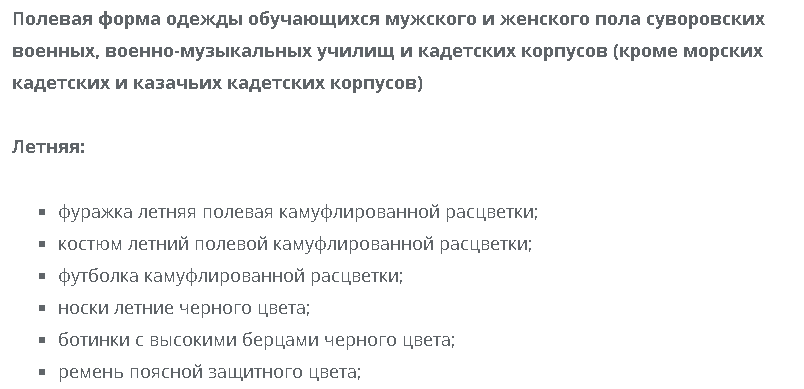 Камуфляжная форма относится к полевой и должна соответствовать такой же комплектации.