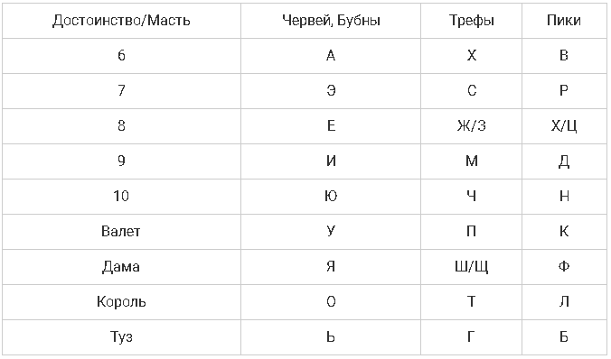 - Колоду перетасуйте, разложите то количество карт, которое соответствует имени жениха.