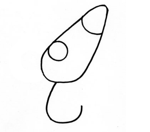2. Отделите дугой острый кончик, дорисуйте круг – это будет глаз.