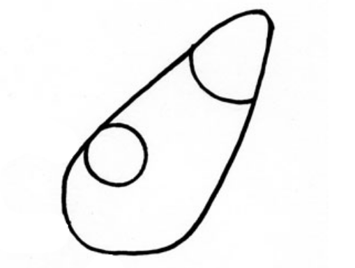 1. Нарисуйте два овала рядом, слева больше, справа – меньше. В маленьком овале дорисуйте круг.