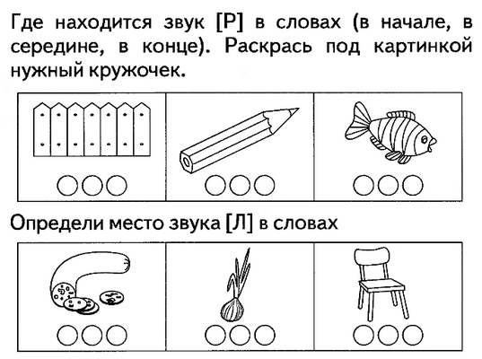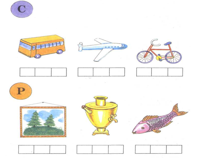 Раскрась квадратик. Где находятся звуки С И Р — в конце, середине или вначале.