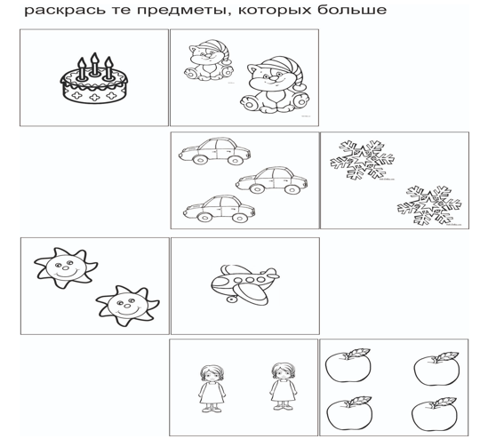 - Ориентироваться в таких понятиях — что больше, что меньше; лево-право; под — на и т.д.
