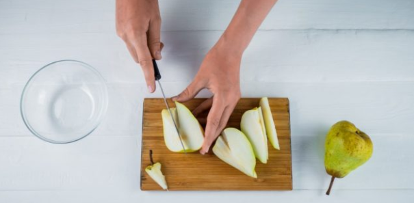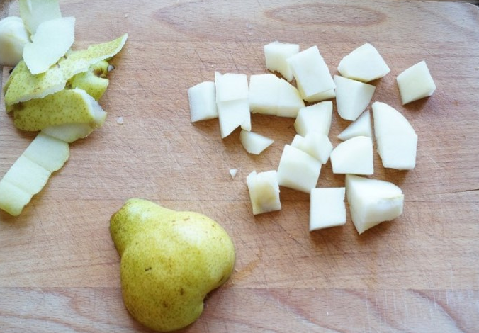- Нарежьте груши на дольки или на кусочки, как нравится вам.