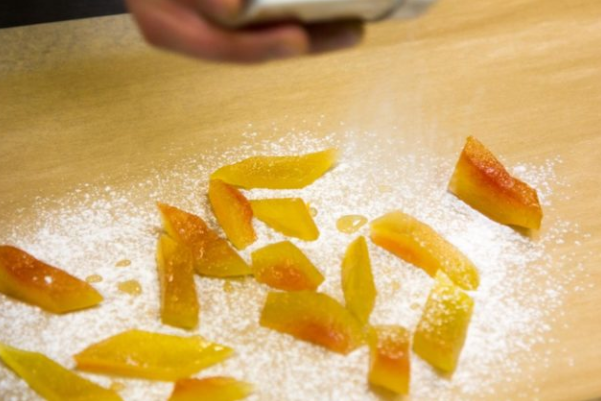 Разложить ломтики в электросушилке, поставить температуру 70 гр, выдержать 5 часов. Чтобы сушка была равномерной, периодически необходимо дольки переворачивать. Когда сушка закончится, цукаты должны получиться плотными и сохранять упругость.