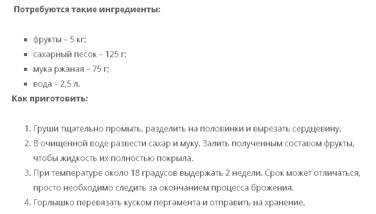 Рецепт браги из груши