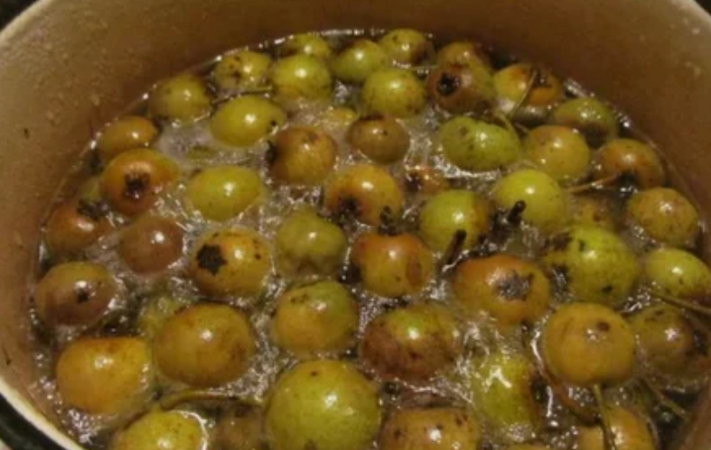 Следует сказать, что дикие груши безвкусные и твердые, но варенье из них получается очень вкусное и ароматное. Когда варенье готово, оно приобретает красно-коричневый цвет.
