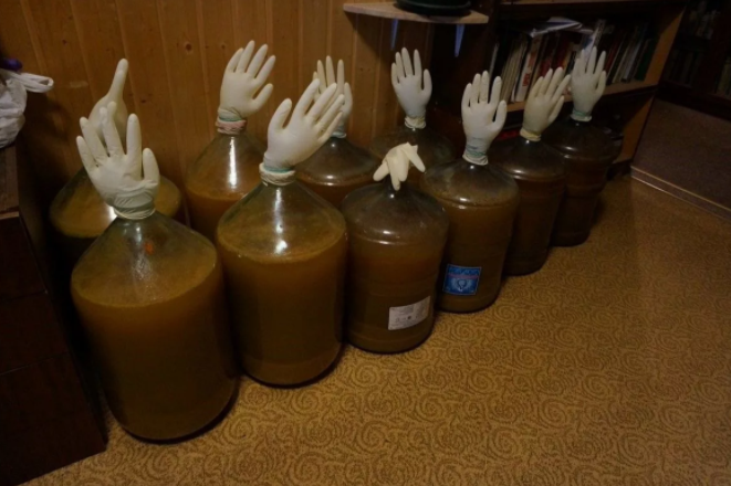 - Слейте напиток таким образом, чтобы осадок остался в емкостях. Проще всего это можно сделать с использованием пластиковой трубки.