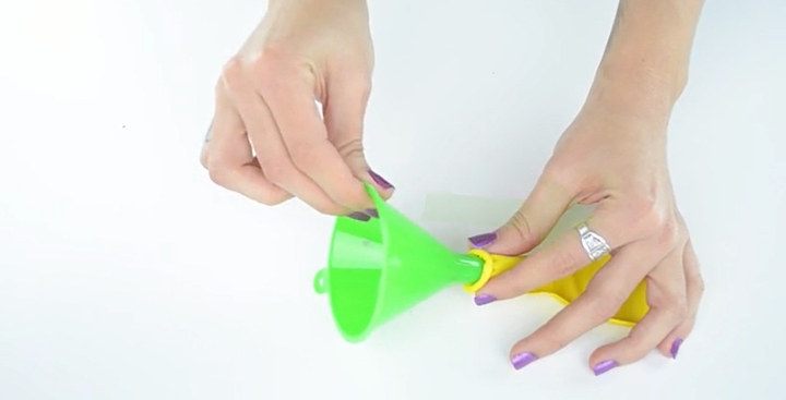 Возьмите воронку и вставьте ее в шарик, через нее удобно насыпать наполнитель.