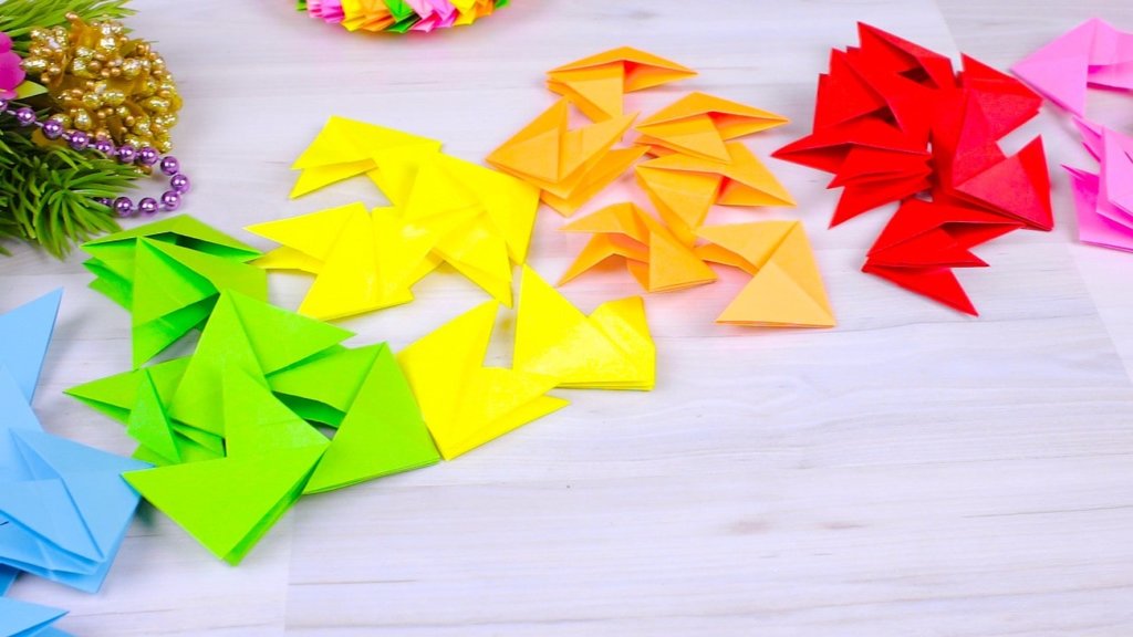 Схем антистрессовой игрушки оригами очень много, они делаются из бумаги различных цветов.