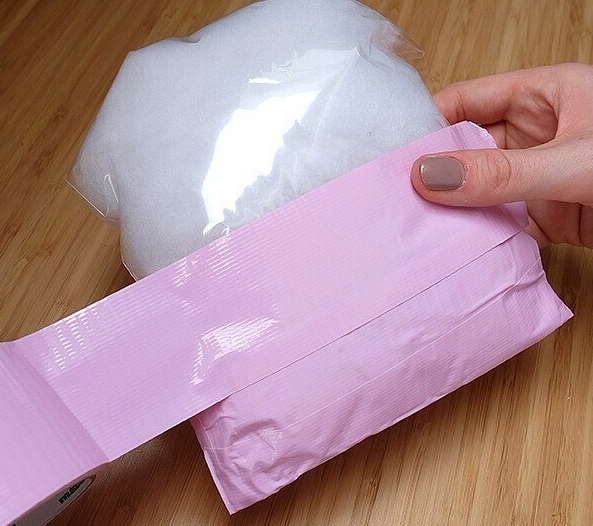 В пакете распределите наполнитель, загните отверстие и зафиксируйте скотчем. Обклейте пакет скотчем со всех сторон с заходом каждой полосы на другую.